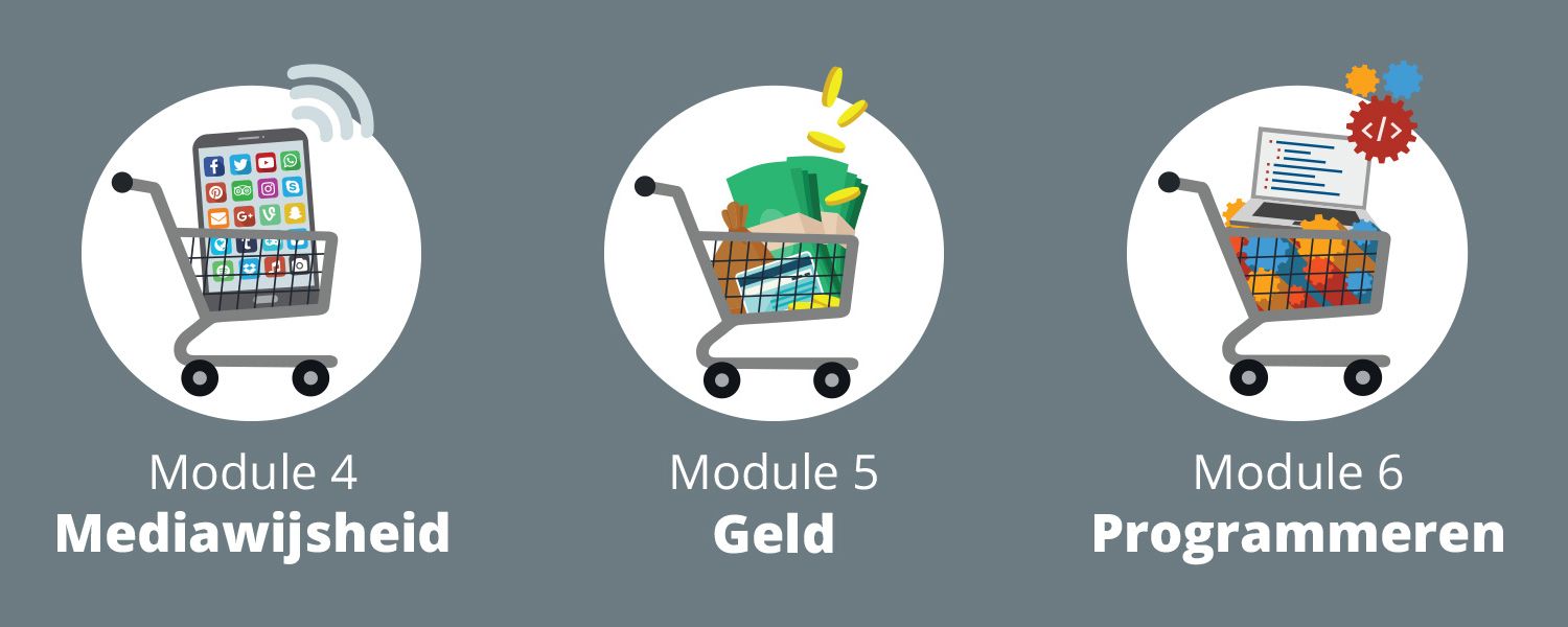 • Er zijn drie optionele verdiepingsmodules: “Mediawijsheid”, “Omgaan met geld” en “Programmeren